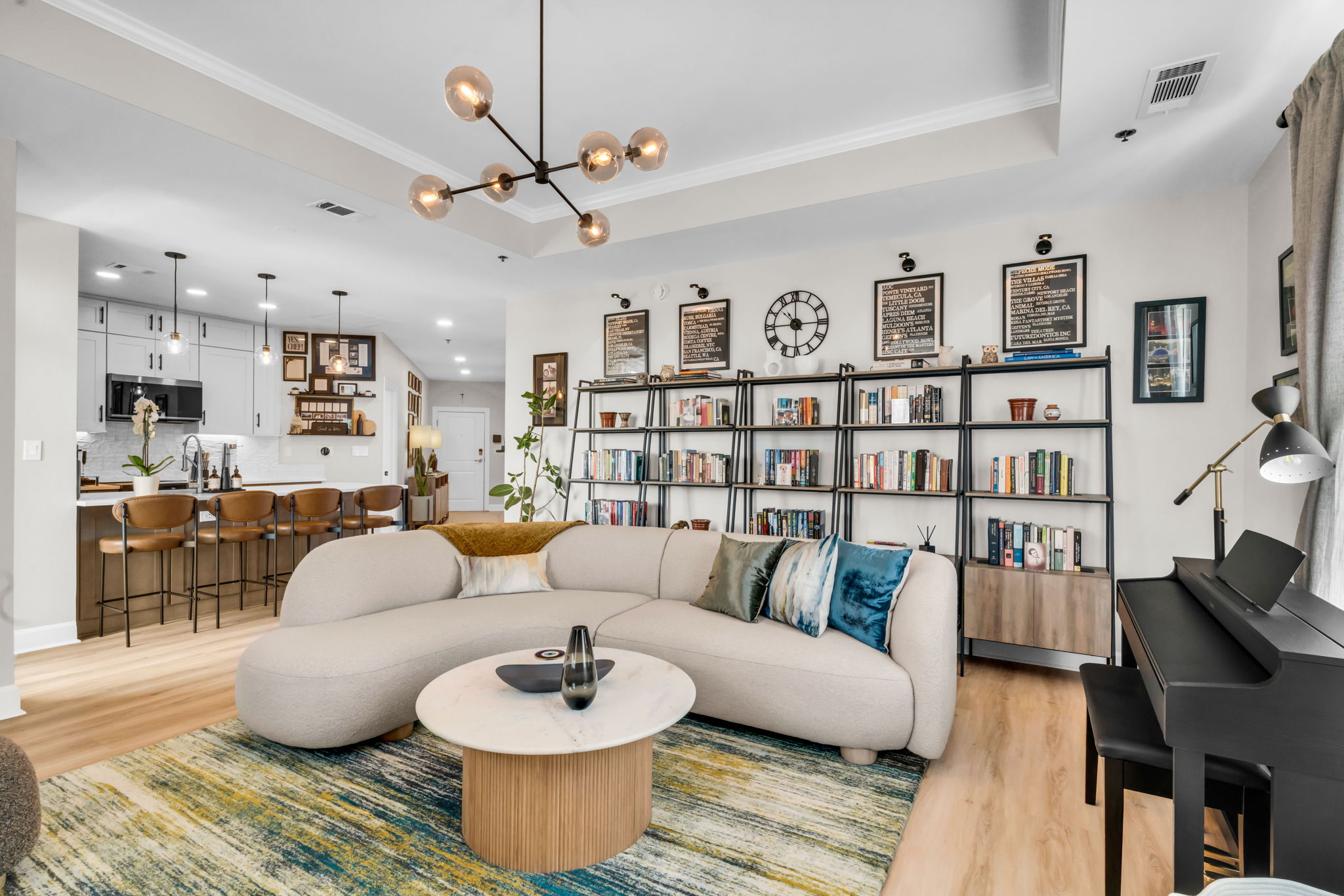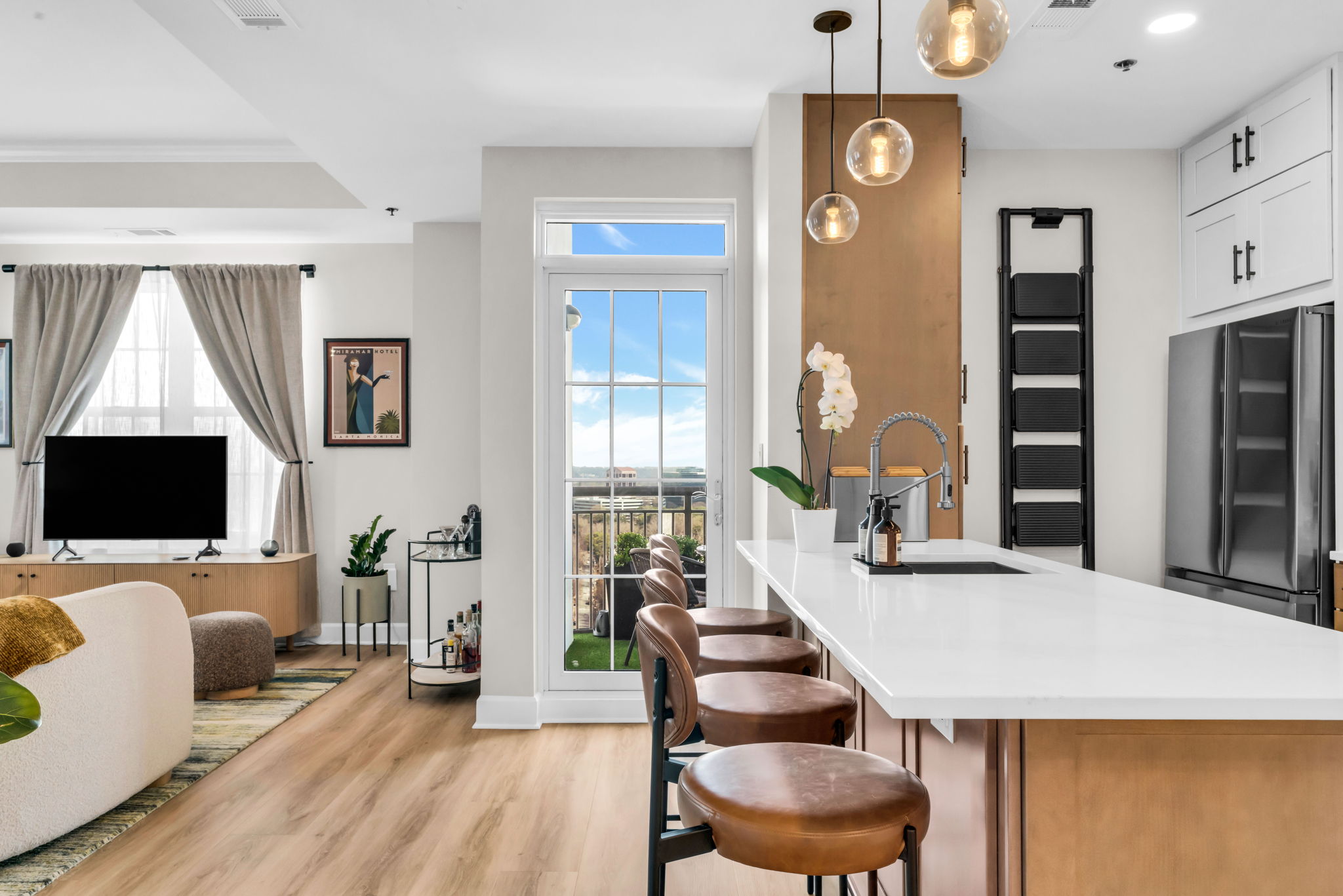 Step inside and you’re greeted by a welcoming foyer that immediately sets a calm, elevated tone. Warm-toned flooring draws you into the expansive living and kitchen space, where natural light pours in from the corner exposure.