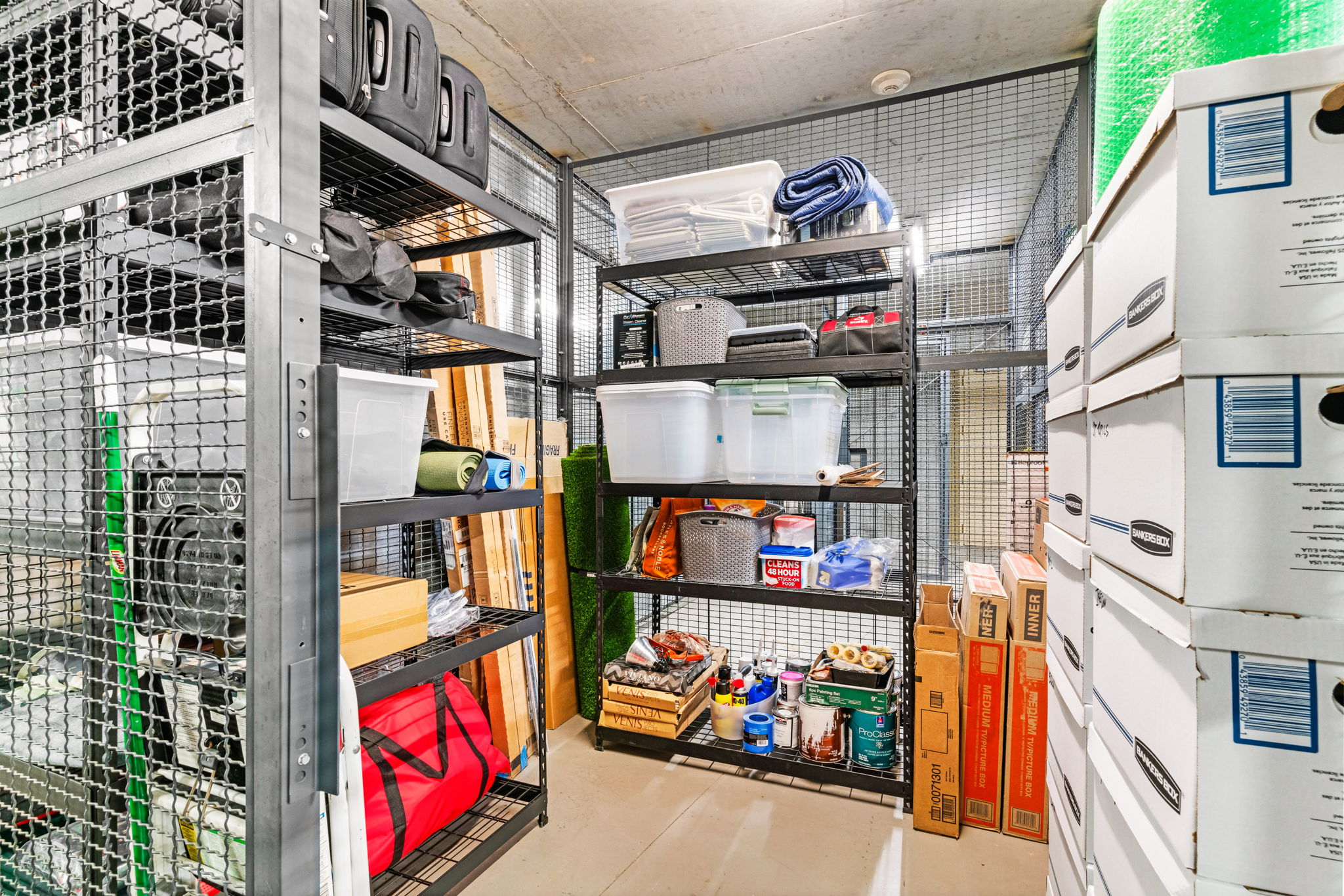 This penthouse includes two deeded side-by-side parking spaces and a private storage unit that is in a climate controlled room, a rare and valuable convenience.
